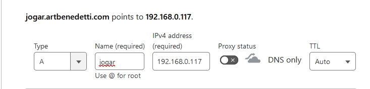 Proxy Status: Deixe como DNS Only (Nuvem cinza)
